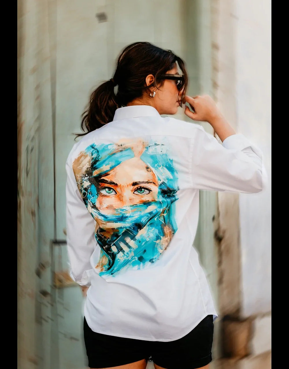 The bold design of the Mystery Woman Shirt by NAUtanki by Naina is truly captivating and makes a great fashion statement.